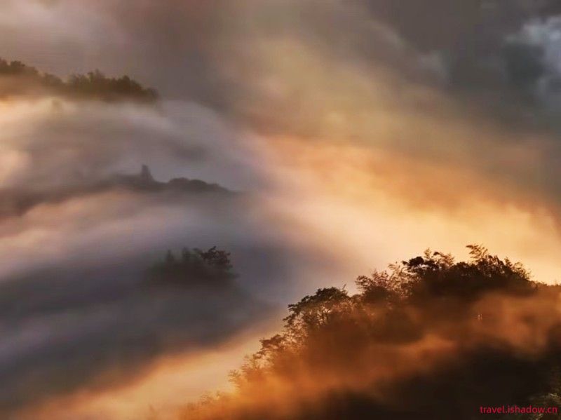 尤其在秋日破晓时分,景色更为动人。当黎明的第一缕曙光努力穿透山间的薄雾,金色的光芒与漫山遍野的翠绿林木相互交织,构成一幅绚丽多彩的自然画卷。